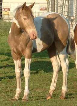 Champagne N Promises - classic champagne tobiano Paint mare. More info here, and a picture of her as a foal here.